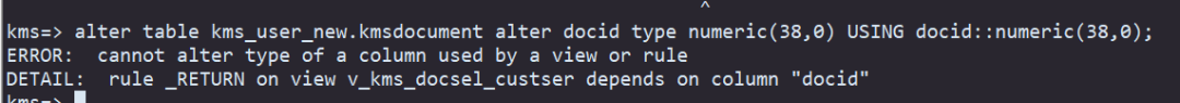 当你修改表字段的时候,会报ERROR: cannot alter type of a column used by a view or rule.