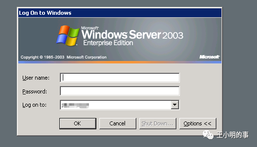 登陆的时候目测是有域环境存在的,”Log on to:” 那里两个选项,一个是域的名称,一个是电脑的名称,我添加的用户必然不是域用户,所以只能选择普通登陆。
