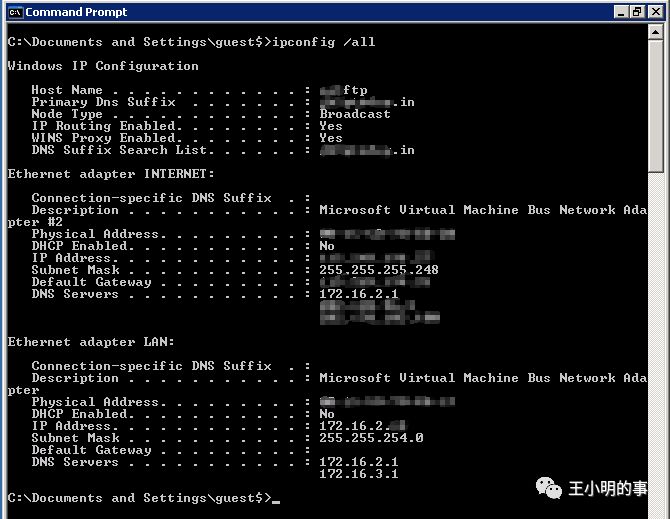 常规操作,查看网络环境(其实正常来说第一步是去黑客们账号的桌面文件夹和敏感文件夹看看有没有什么0day和神器什么的)。
