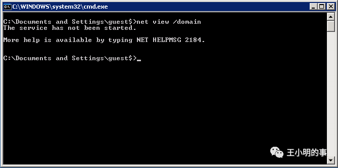 似乎存在域环境,但是“net view”却提示服务没有启动,尝试“net start server”等启动服务未果。