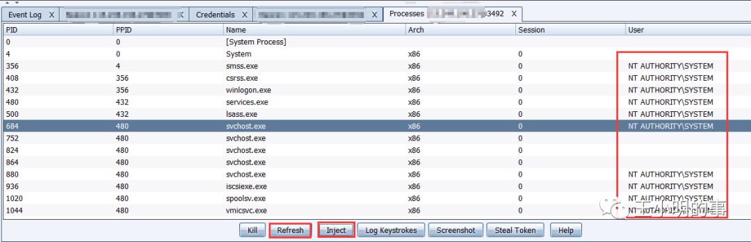 但是这两个在这台机器上都不好使,所以我这里使用进程注入的方法获得system权限。