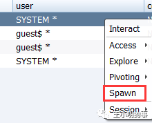 这里保险起见为了预防这个系统进程崩掉或者导致系统不稳定,我一般会“spawn”一下,获得一个由这个会话衍生出的同样是system的高权限会话。