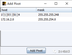 在2.x的版本当中,操作之前需要先“add pivot”,实际上这里选择内网ip段的过程就是添加路由表的过程。