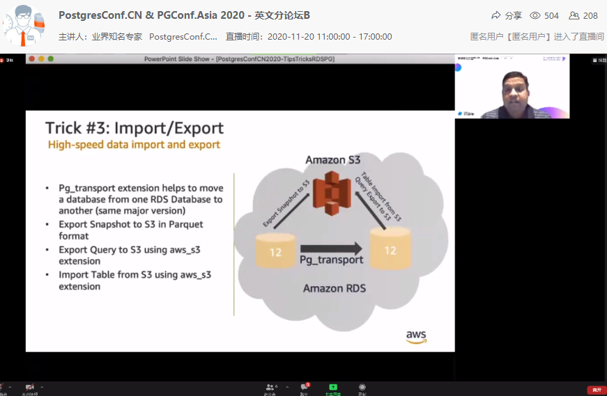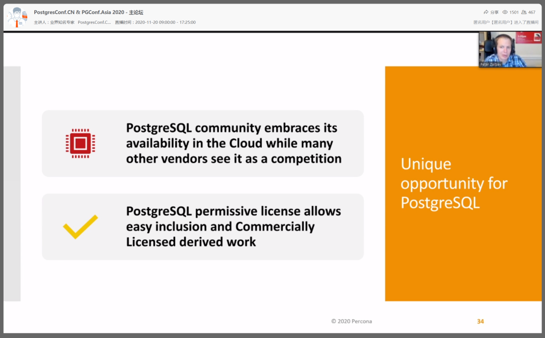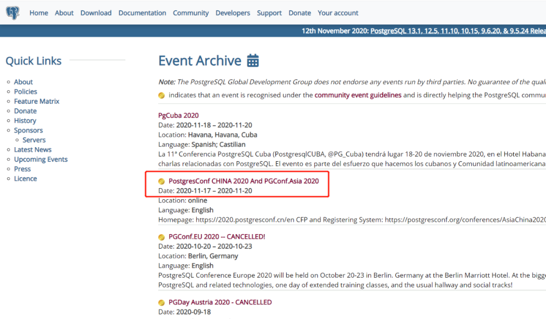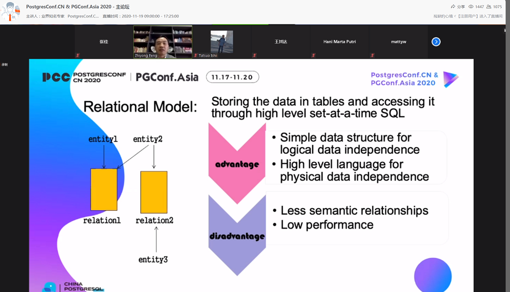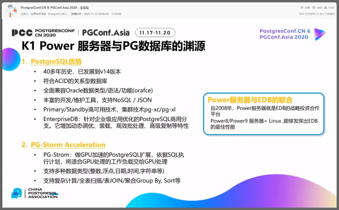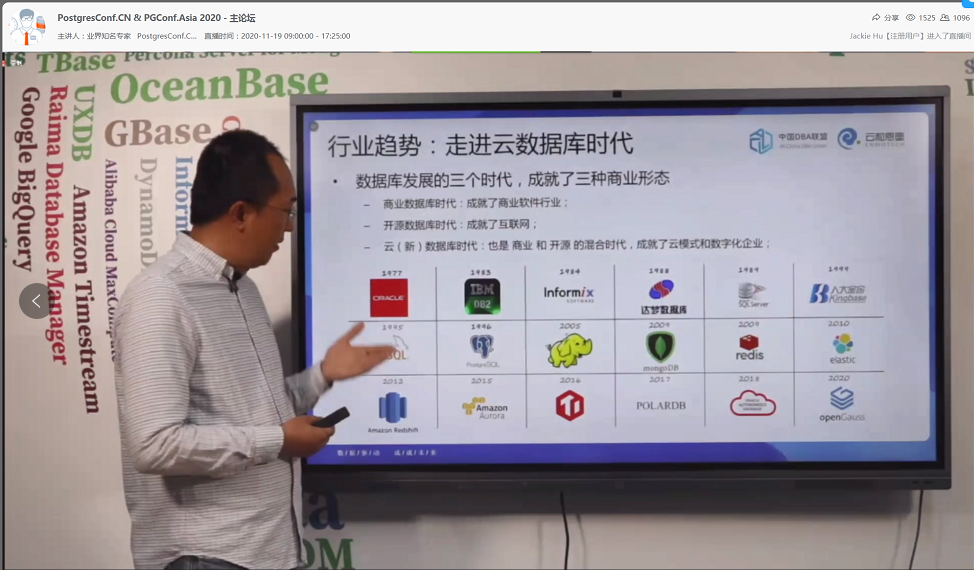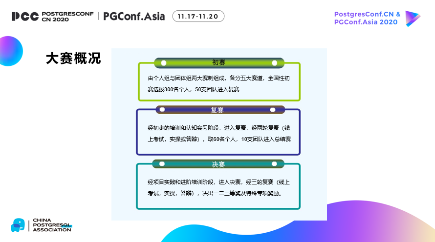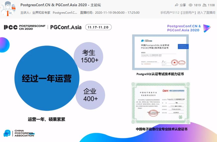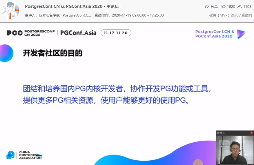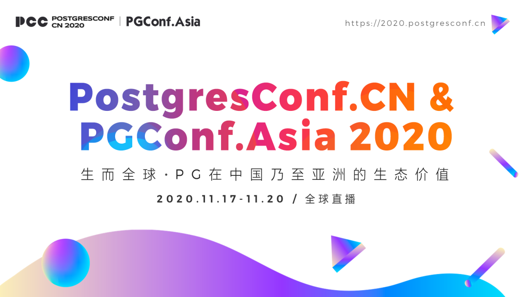 2020年11月17日-20日, PostgresConf.CN & PGconf.Asia2020大会(简称2020 PG亚洲大会)通过线上盛大召开!本次大会由中国开源软件推进联盟PG分会、PostgresConf国际会议组织、PGConf.Asia亚洲社区联合举办,墨天轮技术社区为独家合作直播平台,美国PGCENTRAL 基金会、俄罗斯PG社区、日本PG用户组、印尼PG用户组、泰国PG用户组、欧洲PG社区联合协办,同时得到了PostgreSQL国际社区全力支持与帮助,被列为Postgresql.org社区官网全球金标会议。本次大会集中国PG力量和亚洲主要PG贡献者、应用企业共同打造成为亚洲范围内最大规模的PG生态会议。