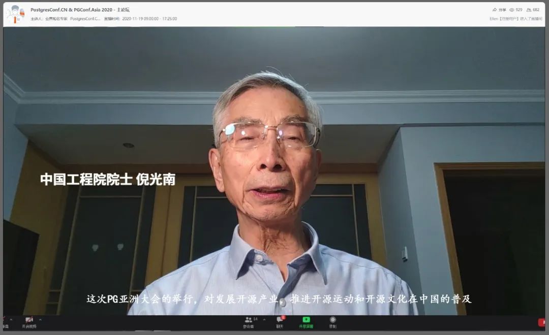 大会首先由中国工程院院士,中国基础软件行业泰斗倪光南做开场演讲,倪院士首先对本次大会的举行表示热烈祝贺,向参会的各国代表和开源专家表示诚挚的问候。他指出开源是当今世界发展的重要趋势,开源技术正在深刻改变全球数字经济和信息产业格局。这次PG亚洲大会的举行,对发展开源产业,推进开源运动和开源文化在中国的普及,加强国际交流与合作,都有很高的价值意义。倪院士希望能够通过PGConf亚洲会议这个平台实现亚洲乃至全球的智力交流,实现更高领域、更高层次全球合作,为全球开源技术发展贡献力量。最后倪院士预祝大会取得圆满成功,并祝愿PG开源生态更加繁荣!祝愿中国PG分会和亚洲PG社区蒸蒸日上,越来越好。