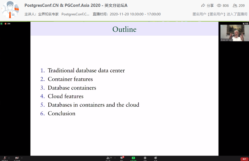 PostgreSQL国际社区联合创始人、EDB副总裁Bruce Momjian做《Will Postgres Live Forever》分享。他表示任何事务都有它的生命周期,开源PG也不例外,但相对闭源商业软件,开源软件的生命周期会更有生命力。