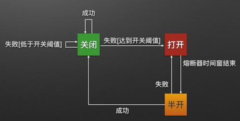 即在熔断后设置一个时间窗口恢复,在恢复的时候仅仅放入少量服务调用进行验证,如果服务已经恢复正常则将熔断器关闭,如果仍然访问失败则继续打开熔断器并顺延一个时间窗口。