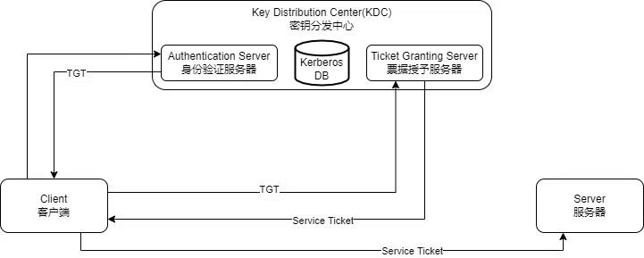 Kerberos主要由三个部分组成:Key Distribution Center(即KDC)、Client和Service。