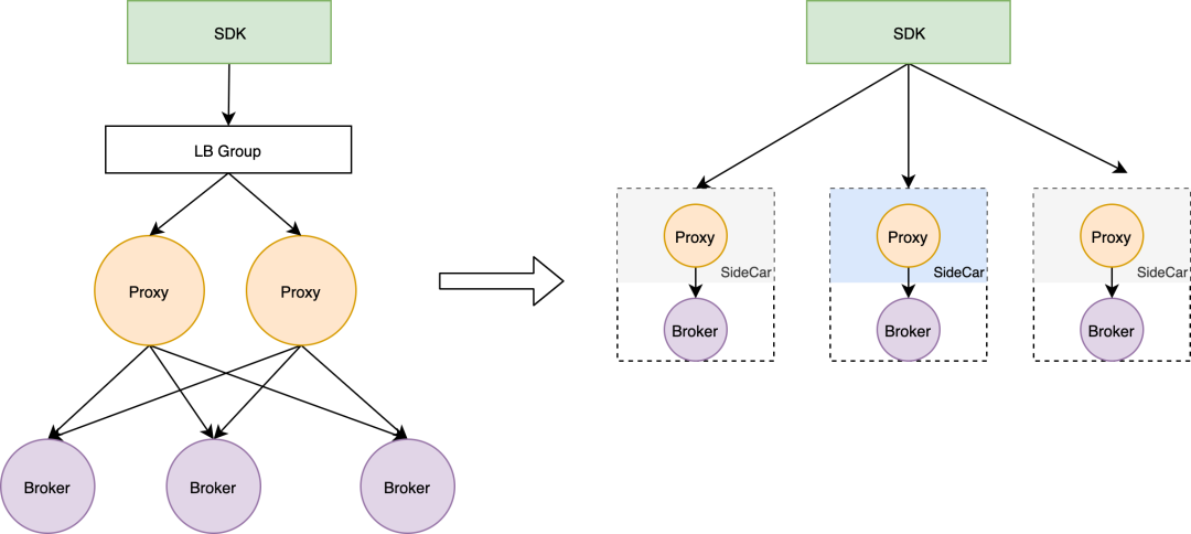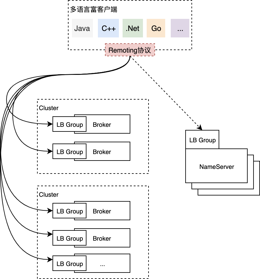 富客户端形态,RocketMQ 的富客户端包含大量的企业级特性,富客户端意味着逻辑复杂,容易出 Bug,依赖客户经常性更新到最新 Release 来保持客户端和服务端良好的兼容性。在单个组织内往往没有任何问题,阿里集团内部通过潘多拉等容器也可以自动为用户升级,但云产品的用户多样性强,升级的驱动力也不足,导致线上存在大量的旧版本客户端,带来稳定性风险。 计算存储一体化,计算存储一体化的 Broker 具备部署结构简单,开源用户可以做的开箱即用;部署节点少,低成本支持集团双十一万亿级的消息规模;数据就近处理,无中间环节,性能高,延迟低。但在云上复杂网络情况下,会带来较多额外的运维工作,难以满足云用户多样性的网络诉求,比如 SingleTunel、AnyTunnel、PrivateLink、公网等。