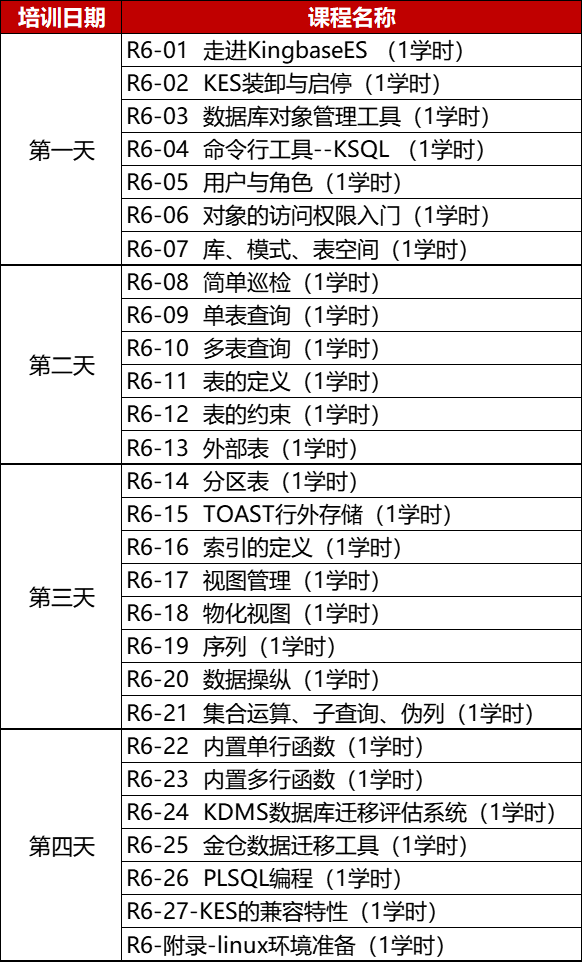 人大金仓根据电子标准院对合作单位在信创人才培养领域的规范性管理要求,面向从业人员或应用主体开发数据库人才培养系列课程,计划于6月2日-5日开展第一期信创专业人员初级认证培训,为构建数据库人才生态奠定基础。