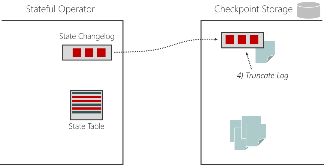 短期持久化 State Changelog 是组成 Checkpoint 的一个部分,所以也需要能持久化存储。同时,State Changelog 只需要保存从最近一次持久化 State Table 到当前做 Checkpoint 时的 Changelog,因此只需要保存很短时间(几分钟)的数据。