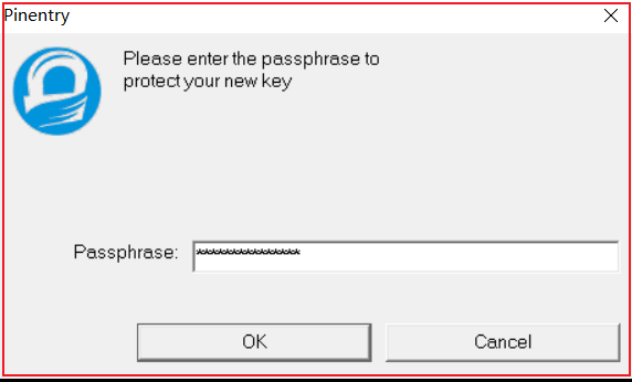 $ gpg --gen-keygpg (GnuPG) 2.2.11-unknown; Copyright (C) 2018 Free Software Foundation, Inc.This is free software: you are free to change and redistribute it.There is NO WARRANTY, to the extent permitted by law.Note: Use "gpg --full-generate-key" for a full featured key generation dialog.GnuPG needs to construct a user ID to identify your key.Real name: hyang0Email address: hyang0@dingtalk.comYou selected this USER-ID:"hyang0 <hyang0@dingtalk.com>"Change (N)ame, (E)mail, or (O)kay/(Q)uit? OWe need to generate a lot of random bytes. It is a good idea to performsome other action (type on the keyboard, move the mouse, utilize thedisks) during the prime generation; this gives the random numbergenerator a better chance to gain enough entropy.We need to generate a lot of random bytes. It is a good idea to performsome other action (type on the keyboard, move the mouse, utilize thedisks) during the prime generation; this gives the random numbergenerator a better chance to gain enough entropy.gpg: key 37970DCC2449EFA9 marked as ultimately trustedgpg: directory '/c/Users/Administrator/.gnupg/openpgp-revocs.d' createdgpg: revocation certificate stored as '/c/Users/Administrator/.gnupg/openpgp-revocs.d/0F14EAC47ABC2B64895B6EBC37970DCC2449EFA9.rev'public and secret key created and signed.pub rsa2048 2022-05-27 [SC] [expires: 2024-05-26]0F14EAC47ABC2B64895B6EBC37970DCC2449EFA9uid hyang0 <hyang0@dingtalk.com>sub rsa2048 2022-05-27 [E] [expires: 2024-05-26]