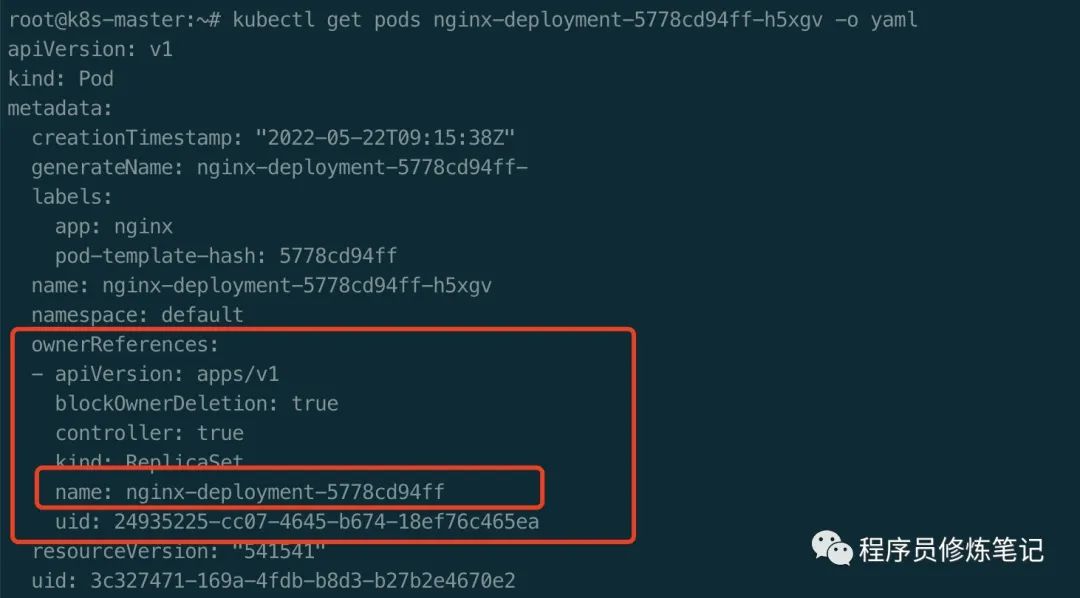 从上图可以看到,Pod的OwnerReference是ReplicaSet。