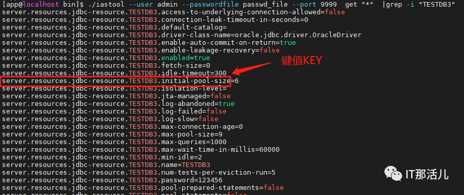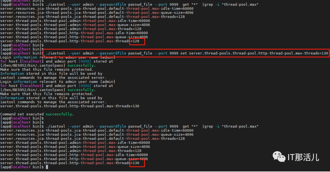 ./iastool --user admin --passwordfile passwd_file --port 9999 get "*" |grep -i "thread-pool.max"