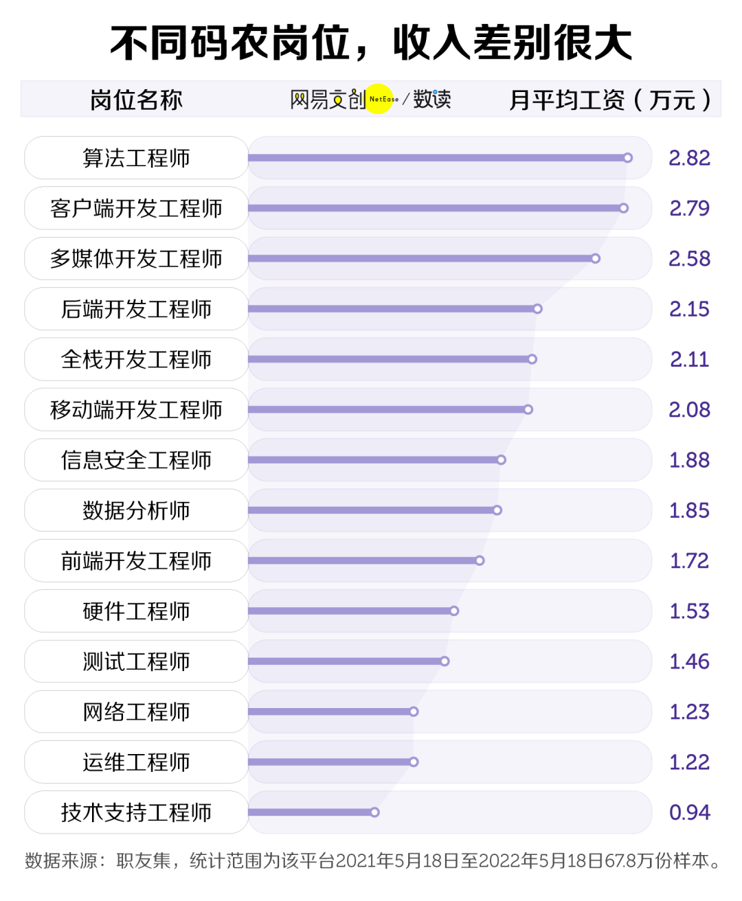 同样都是码农,最让人文社科学生羡慕的是算法或开发岗,平均薪资要遥遥领先于其他岗位。