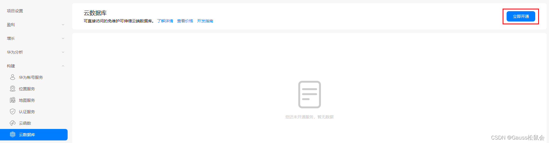 使用Cloud DB服务前,您需要先启用服务。