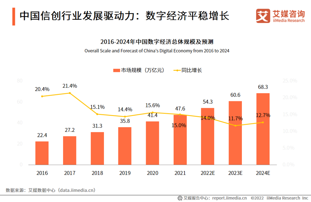 中国信创行业发展驱动力:数字经济平稳增长