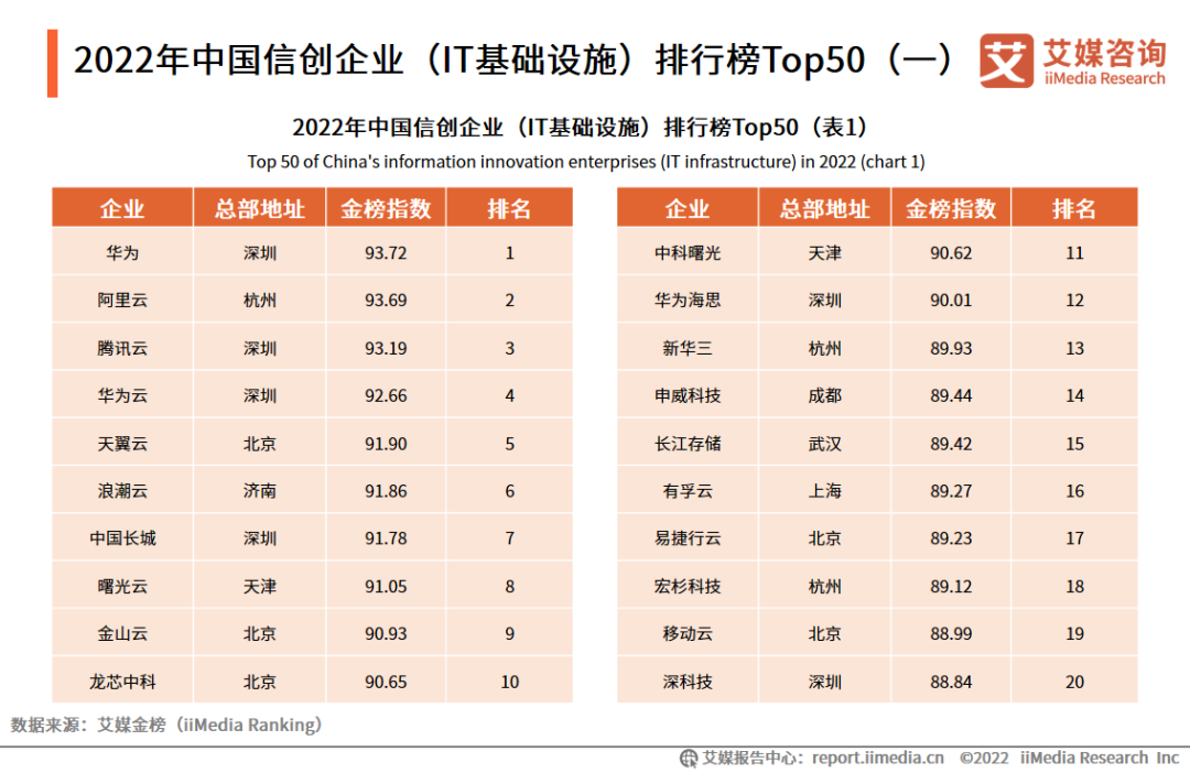2022年中国信创企业(IT基础设施)排行榜Top50(一)