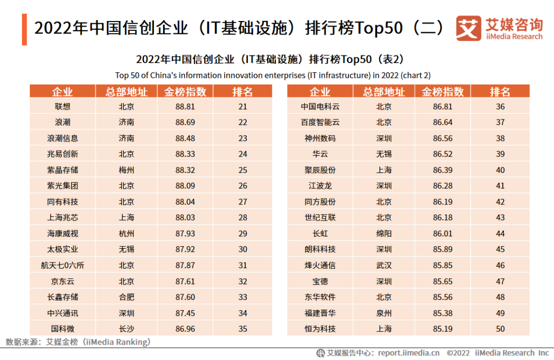 2022年中国信创企业(IT基础设施)排行榜Top50(二)