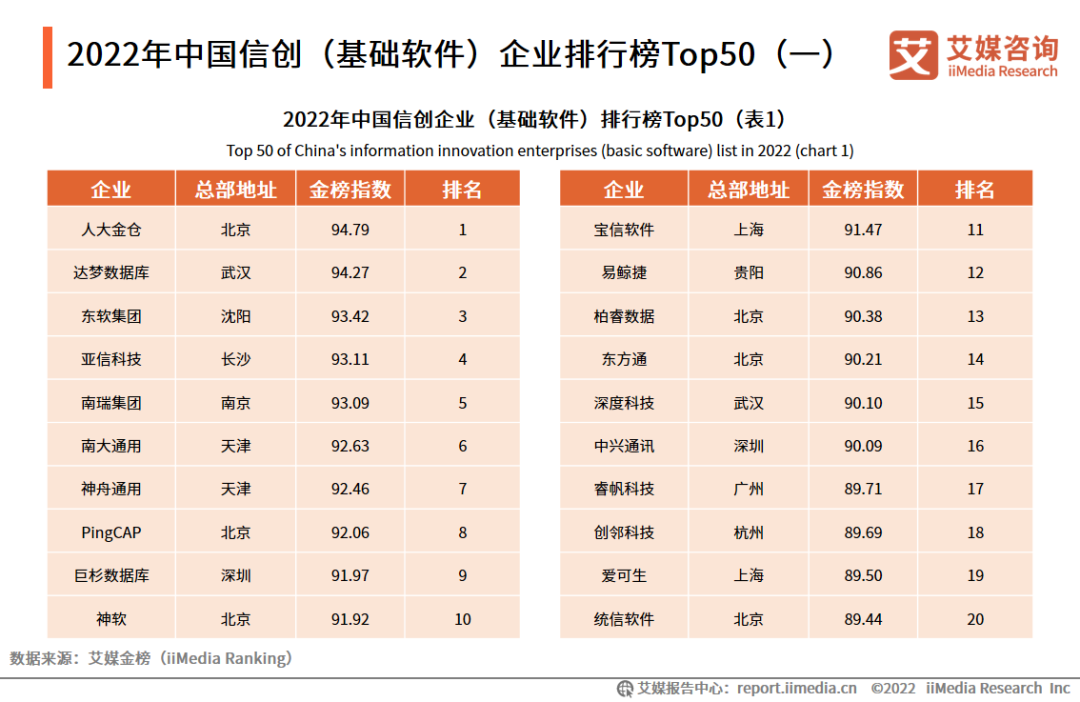 2022年中国信创(基础软件)企业排行榜Top50(一)