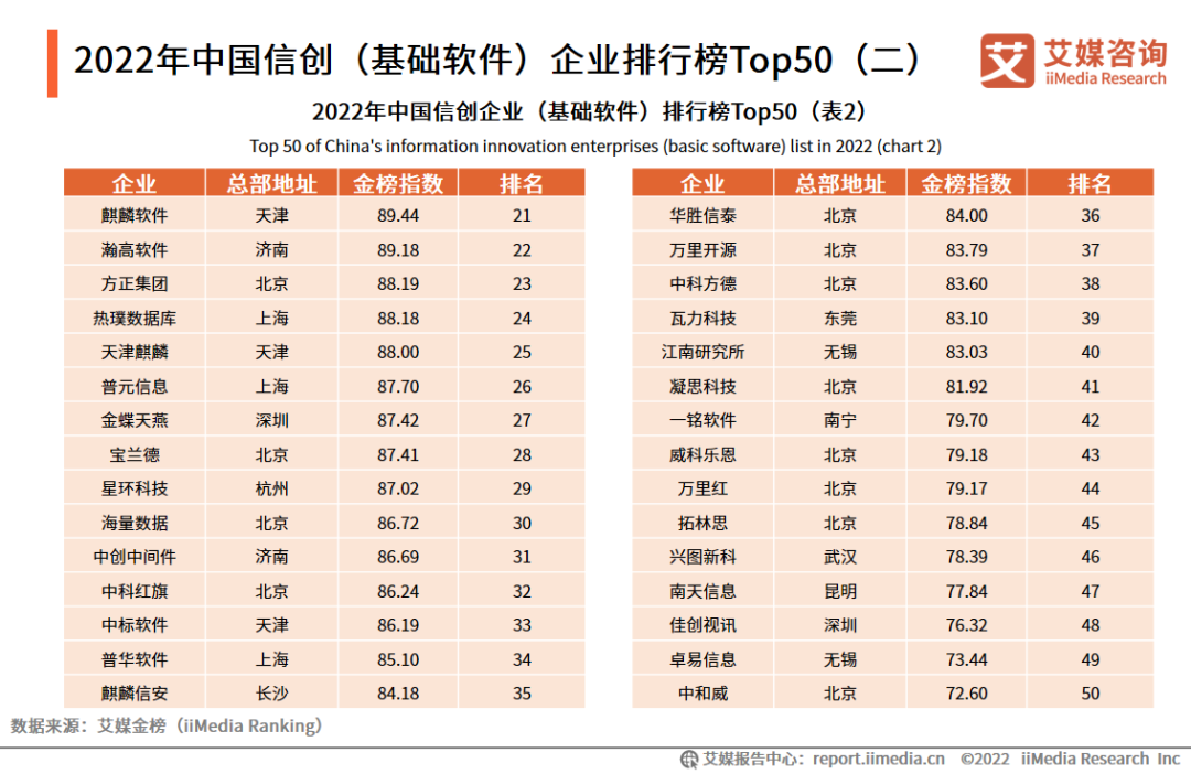 2022年中国信创(基础软件)企业排行榜Top50(二)