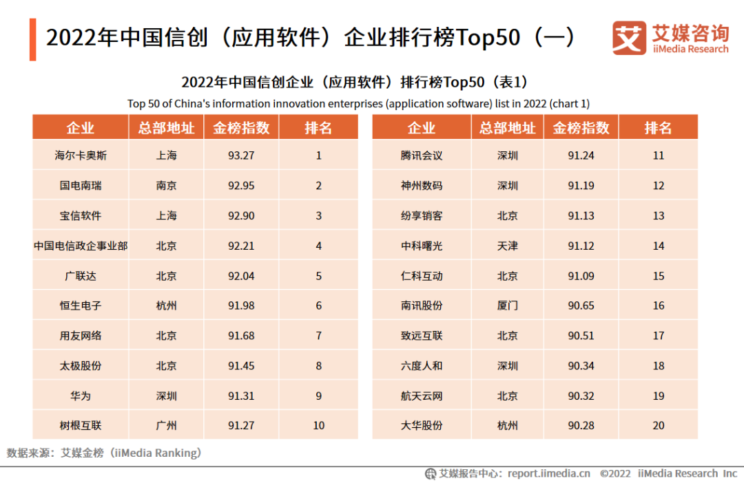 9.2022年中国信创(应用软件)企业排行榜Top50(一)