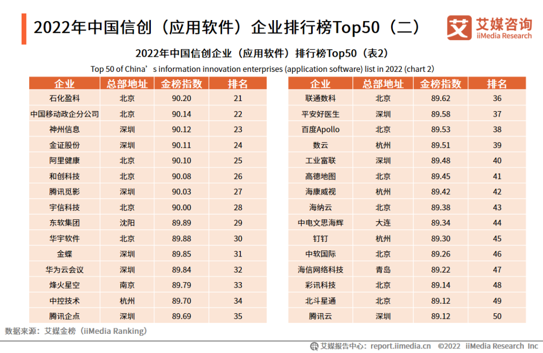 10.2022年中国信创(应用软件)企业排行榜Top50(二)