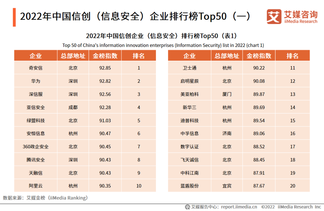 11.2022年中国信创(信息安全)企业排行榜Top50(一)