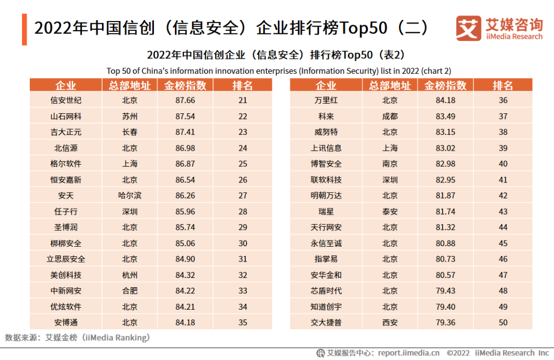 2022年中国信创(信息安全)企业排行榜Top50(二)