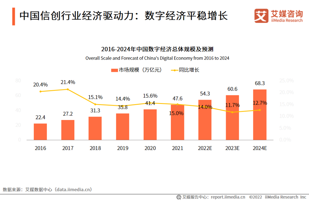 从“十三五”到“十四五”,中央及地方政府一直以发展“数字经济”和建设“数字中国”为重要目标。数据显示,2021年中国数字经济规模已达47.6万亿元,占GDP比重为43.5%,2024年将达68.3万亿元,可见,中国数字经济发展取得了良好的成效。