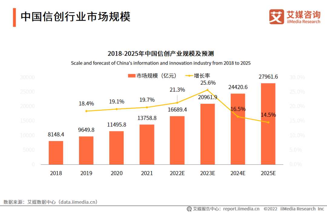 数据显示,中国信创产业规模在2020年突破万亿元,2021年信创产业规模达13758.8亿元,预计未来将保持高速增长态势。
