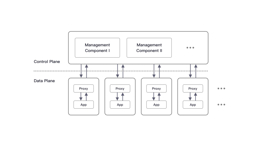 说到 Database Mesh 就不得不从 Service Mesh 开始。2016 年,第一代 Service Mesh 由 Linkerd 带入大众视野,紧接着 2017 年就诞生了以 Istio 为代表的第二代 Service Mesh,采用了控制面和数据面分离的设计模式,将服务治理中如流量治理、访问控制、可观测性等关键行为要素进行了抽象和标准化,然后借助 Kubernetes 的 Sidecar 模式解耦了应用容器和治理容器。至此,Service Mesh 的形态已经基本确定。