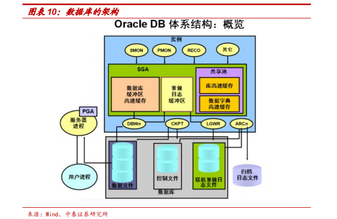 Oracle 服务器=实例+数据库。实例=SGA(实例内存)+后台进程内存=SGA+PGASGA=Database Buffer Cache (数据库高速缓存区缓存)+Share Pool (共享池)+Redo Log Buffer(日志缓存区)。
