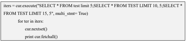 注意:获取下一个结果集方法 nextset 不能在遍历过程中使用,如下面的