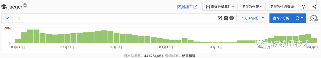 存储周期:SLS能够提供长达30天的存储周期, 存储量:一天存储的Span数量超过4亿,使用约6TB存储空间, 性能:在SLS Query界面进行条件查询可以在3-5s以内返回结果, 成本:每天成本💰约为70元,一年约2万元左右(大约为2台8U32G的ECS的按年付费的价格)。
