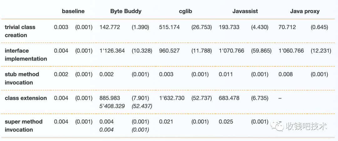 其中ByteBuddy的易用性和性能都达到一流的水准,