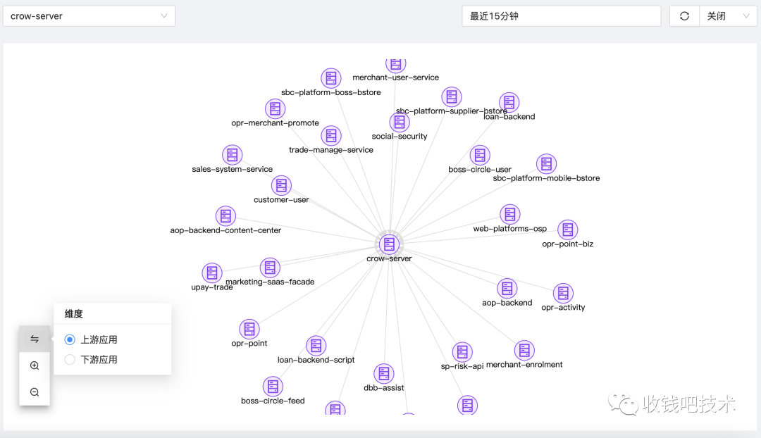 为了实现这个功能,我们使用了Apache Flink,通过消费Kafka中的链路数据,实时计算出服务之间的依赖关系,将Tuple<downsampled timestamp, caller, sub-caller, callee, sub-callee>