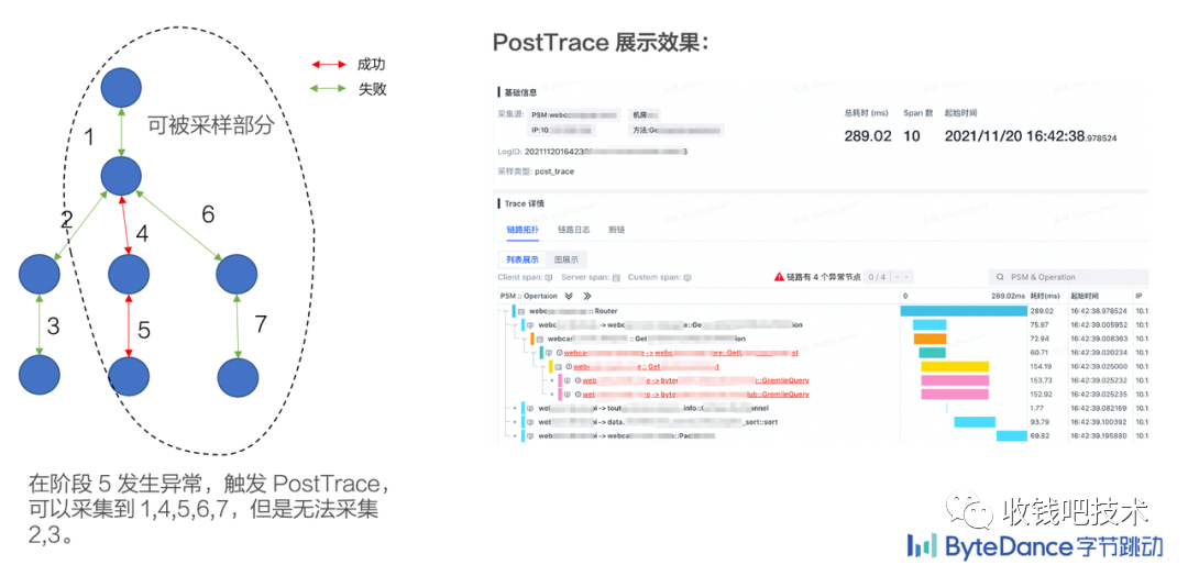 发生错误的服务将采样决定强制进行翻转,如果这条链路没有进行采样的话。但这样的话会丢失采样决策改变之前的所有链路以及其他分支链路的数据。