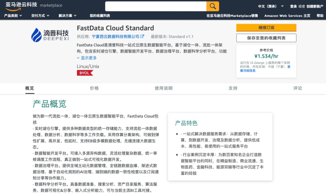 近日,滴普科技旗下实时湖仓平台 FastData,正式上线亚马逊云科技 Marketplace(中国区)。用户可以通过亚马逊云科技 Marketplace(中国区)网站 ,更加灵活便捷地快速部署产品。