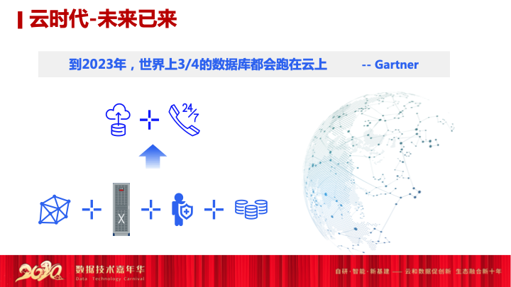 今天开场我想说一句话,这句话很多云厂商都会去跟客户去讲,“2023年,世界四分之三的数据库都跑到云上”。我不知道大家信不信,反正我是信这句话的,我从两个层面解释一下这句话。