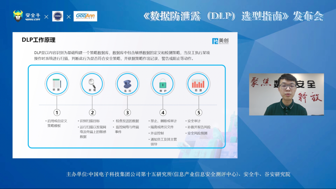 《选型指南》发布会上,美创解决方案部资深产品专家金佳伟对诺亚数据防泄露系统进行介绍分享,他表示: