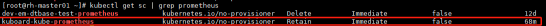 [root@rh-master01 ~]# kubectl get sc | grep prometheusdev-em-dtbase-test-prometheus kubernetes.io/no-provisioner Delete Immediate false 12dkuboard-kube-prometheus kubernetes.io/no-provisioner Retain Immediate false 68m