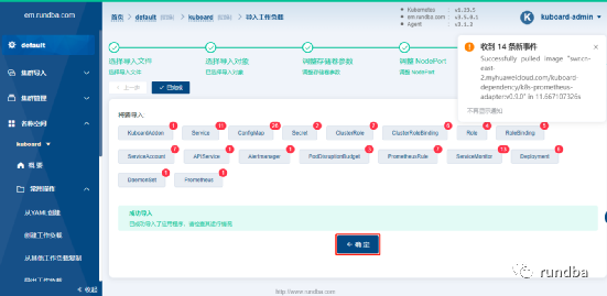 等待数分钟后,kuboard的各Pod就绪,点击确定