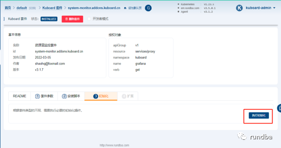 此时kuboard套件的状态变为INSTALLED,点击“执行初始化”