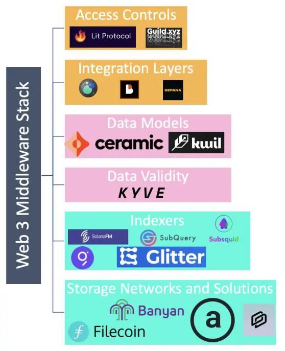 一个常用的示例是社交媒体网络,并将这种模型扩展到更广泛的 Web 3 中间件堆栈。