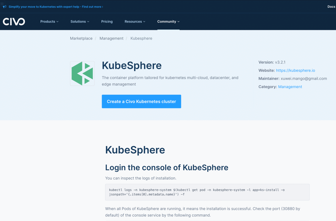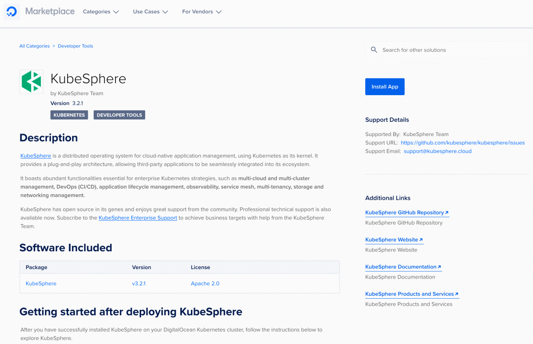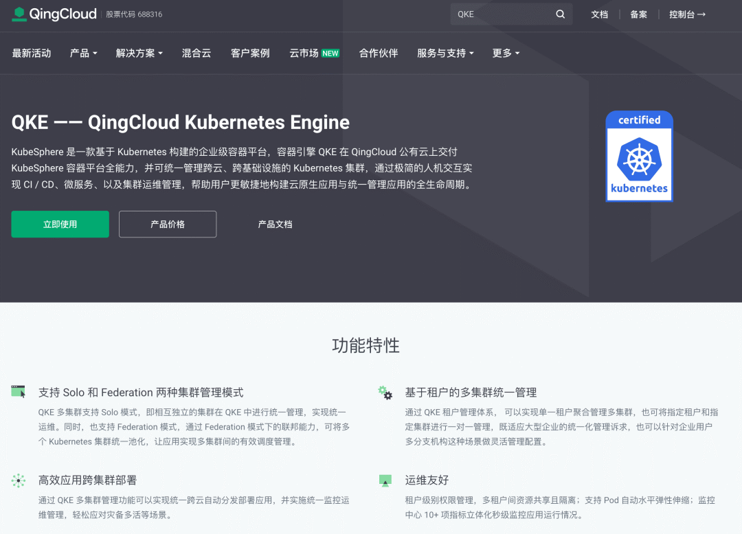 发布了多个主要版本,最新的两个主要版本是 3.1 和 3.2,包含了众多新功能。具体可参考:👉KubeSphere 3.2.0 发布:带来面向 AI 场景的 GPU 调度与更灵活的网关。 在 AWS、Azure、DigitalOcean、QingCloud 等全球各大公有云应用市场上架,分别集成了 Amazon EKS、Azure AKS、DigitalOcean Kubernetes 与青云 QKE 容器引擎。