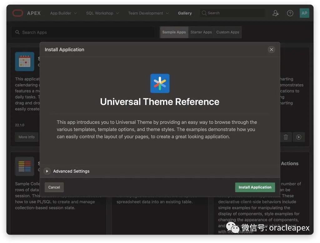 现在,您无需离开APEX即可安装入门应用程序和示例应用程序。在几秒钟内,您可以选择您想要的应用程序并从更新的应用程序库中安装它。