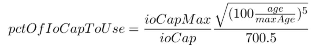 然后将此数量限制为 ioCapMax 。如您所见,pctOfIoCapToUse乘以ioCap。如果您回顾给出 pctOfIoCapToUse 的方程式,它们的分母为ioCap,结果ioCap 分子分母抵消,因此自适应刷新算法独立于innodb_io_capacity