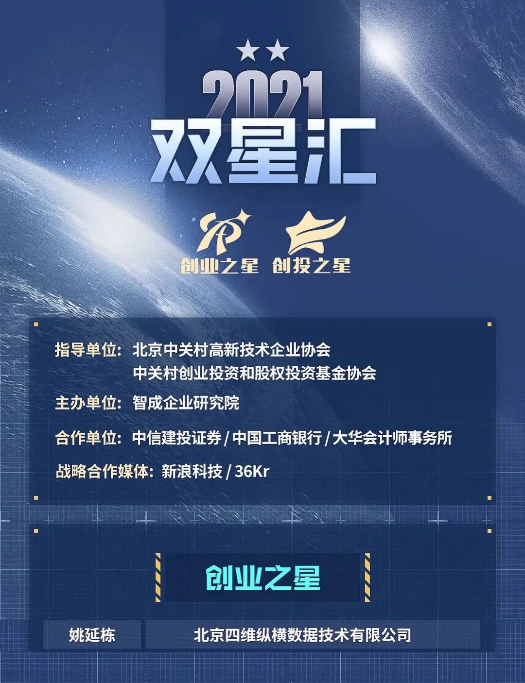 近日,备受业界关注的中关村“创业之星”2021年度评选榜单重磅发布。该奖项是面向各领域成功创始人的一项权威性大奖,北京四维纵横数据技术有限公司(yMatrix)创始人兼 CEO 姚延栋,从1020位候选人中脱颖而出,获评“最具发展潜力与创新影响力的创业者”荣誉称号。